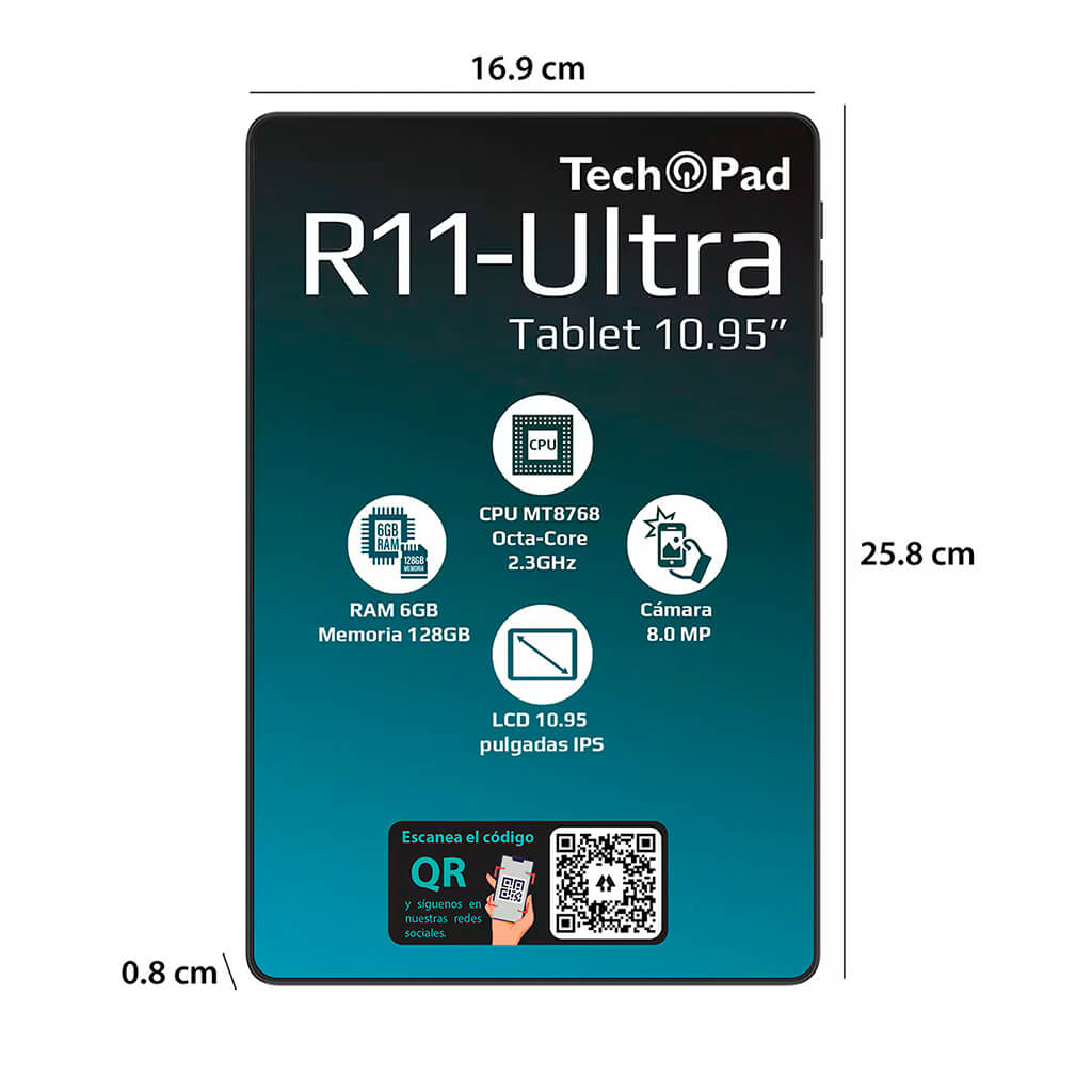 La Tech Pad R11 Ultra llega para combinar tamaño, capacidad y usabilidad en un dispositivo que destaca por su pantalla de casi 11 pulgadas, ideal para ver vídeos, estudiar, navegar o hacer multitarea con comodidad. Integra 6 GB de RAM y 128 GB de almacenamiento interno, lo que la convierte en una opción sólida para guardar aplicaciones, archivos y contenido multimedia.